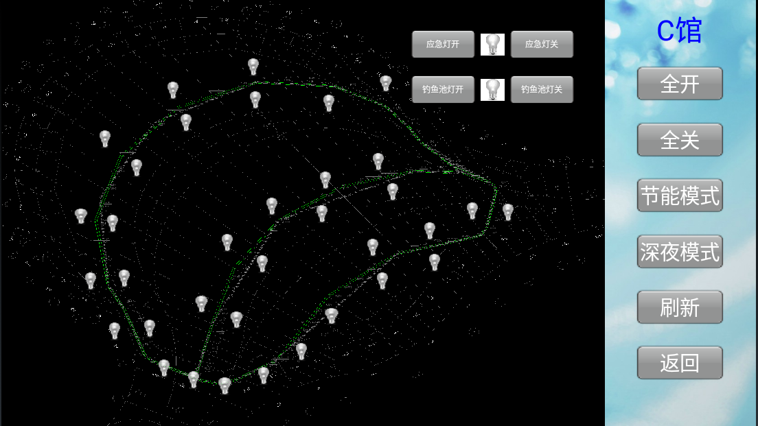智能照明控制系統(tǒng)對各個場館內的照明納入到統(tǒng)一的系統(tǒng)平臺進行集中管理,實現一鍵全開全關,游樂園可根據不同節(jié)日預設不同燈光場景,增添假日氣氛,也可根據客流量預設燈光(如下圖:節(jié)能模式),在保持照明需求以及氛圍感的同時,實現節(jié)能減排。