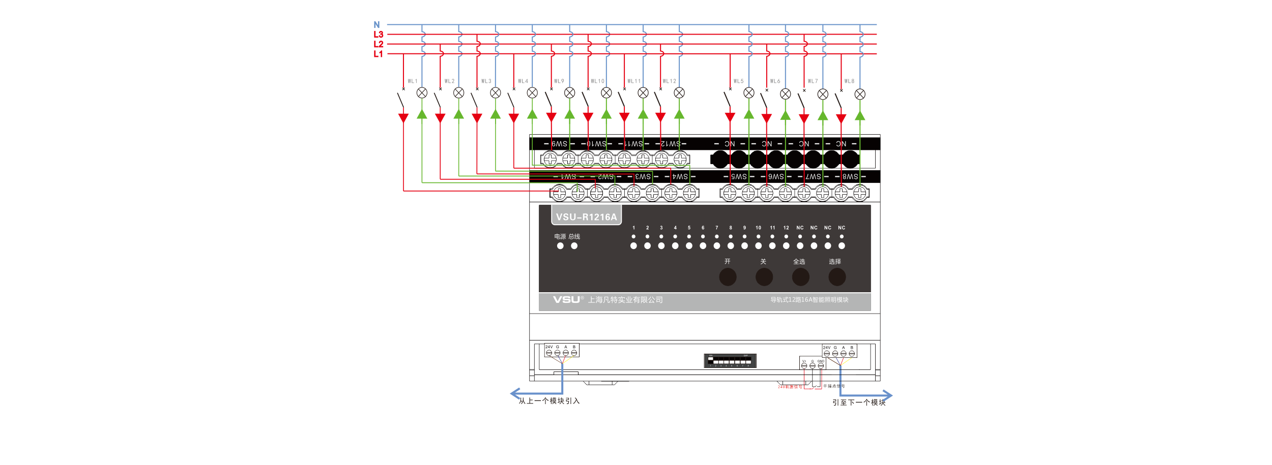 本產(chǎn)品為導(dǎo)軌式安裝,含12路智能繼電器,每回路可獨立控制3520W燈具的開關(guān),帶應(yīng)急按鍵,LED燈實時指示各個回路開關(guān)狀態(tài),可設(shè)置為互鎖控制6組窗簾開合;