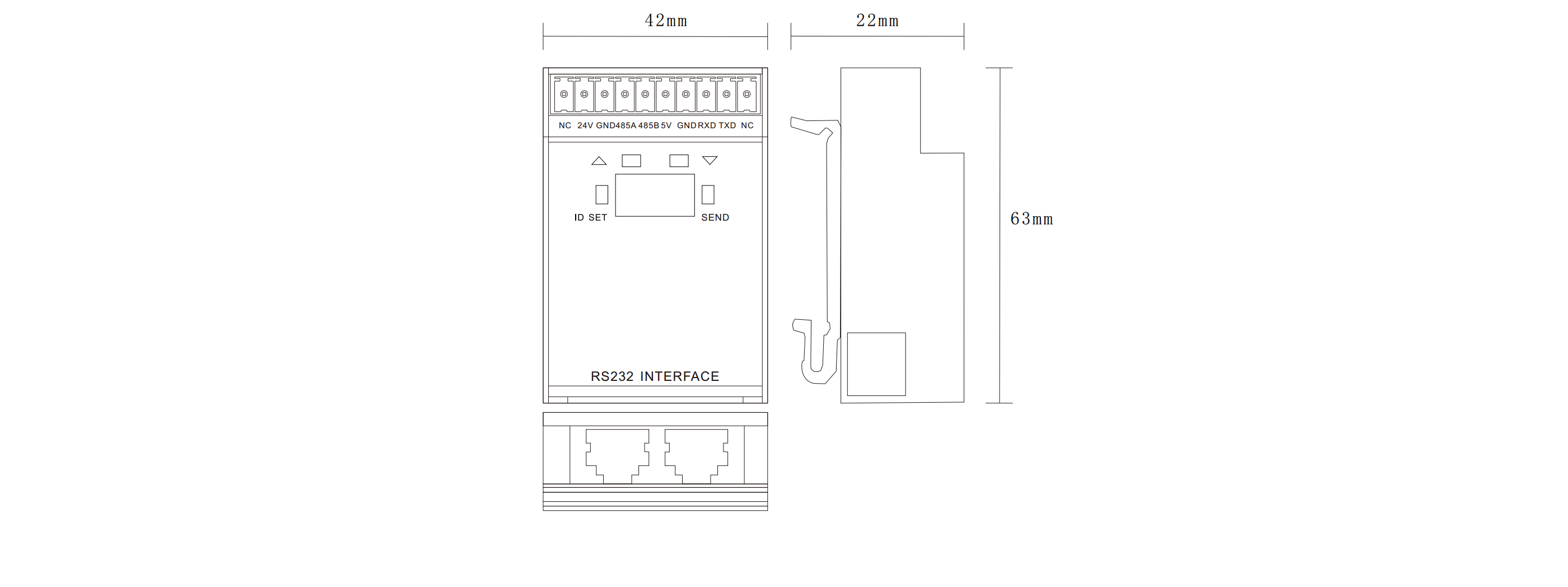 2,提供1個(gè)串口接口,RS485/RS232,雙向通訊,