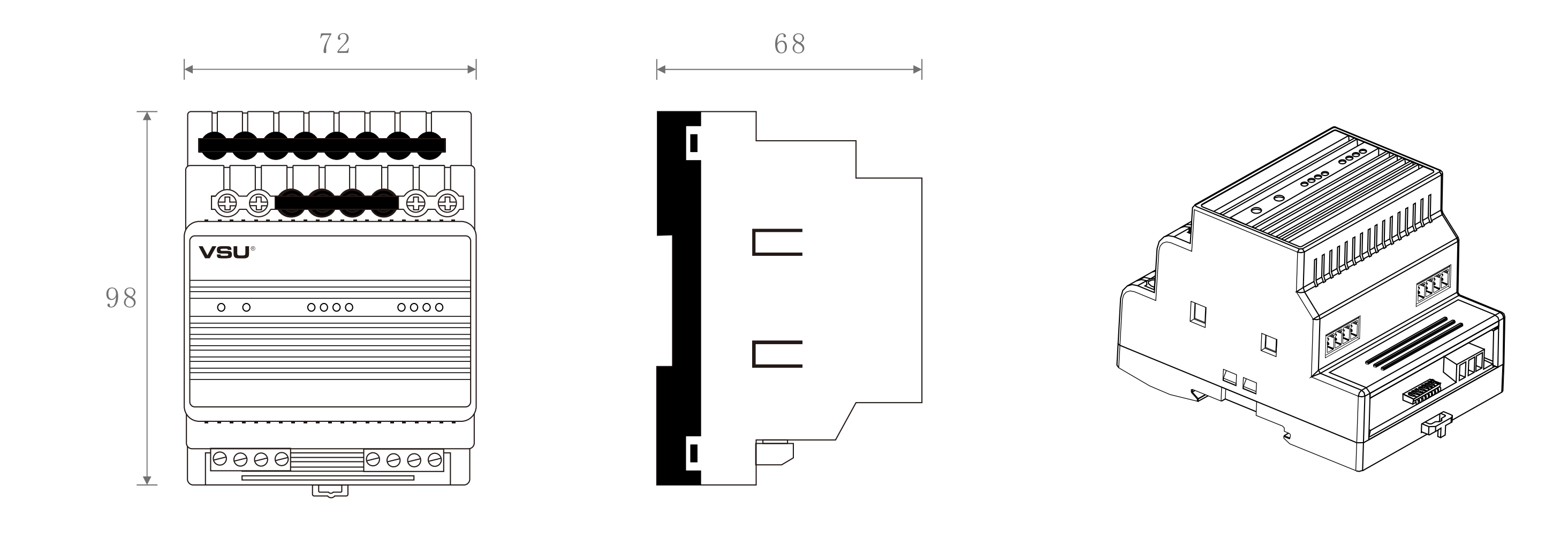 1,標準導(dǎo)軌式安裝占4個模數(shù)位;