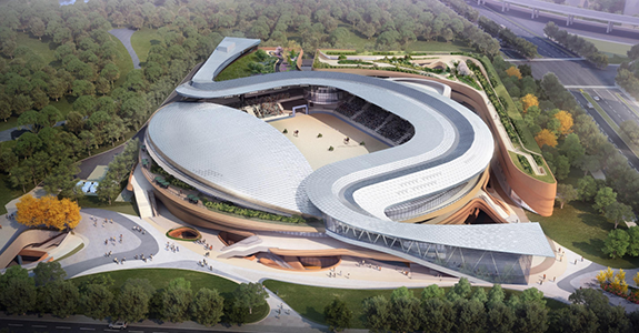 項(xiàng)目概述: 上海久事國際馬術(shù)中心,位于黃浦江畔世博文化公園南部,是世博文化公園南區(qū)重要和特殊的組成部分,國內(nèi)首座符合國際頂級(jí)馬術(shù)賽事標(biāo)準(zhǔn)的專業(yè)性比賽場館。場館總建筑面積8.2萬平方米,主體建筑高度15米。該項(xiàng)目選址浦東新區(qū)世博文化公園C04-01a地塊,南臨通耀路,西臨濟(jì)明路,總用地面積3.32公頃,主體建筑包含1個(gè)90X60米的競賽場地、熱身場、訓(xùn)練場和高規(guī)格馬廄,以及約5000座觀眾與貴賓看臺(tái)等設(shè)施。